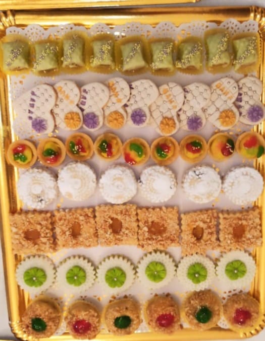 La préparation d’un assortiment de pâtisseries marocaines, comme montré dans l’image, repose sur la réalisation de عدة أنواع de الحلويات مثل كعب الغزال، غريبة، صابلي، وبريوات باللوز. Chaque type a sa propre méthode, mais ils partagent souvent des ingrédients de base comme les amandes, le sucre, la farine et l’eau de fleur d’oranger.
