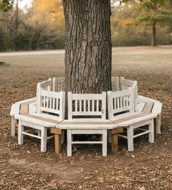 Disposez les chaises autour de l’arbre en formant un cercle ou un demi-cercle, en les espaçant régulièrement.